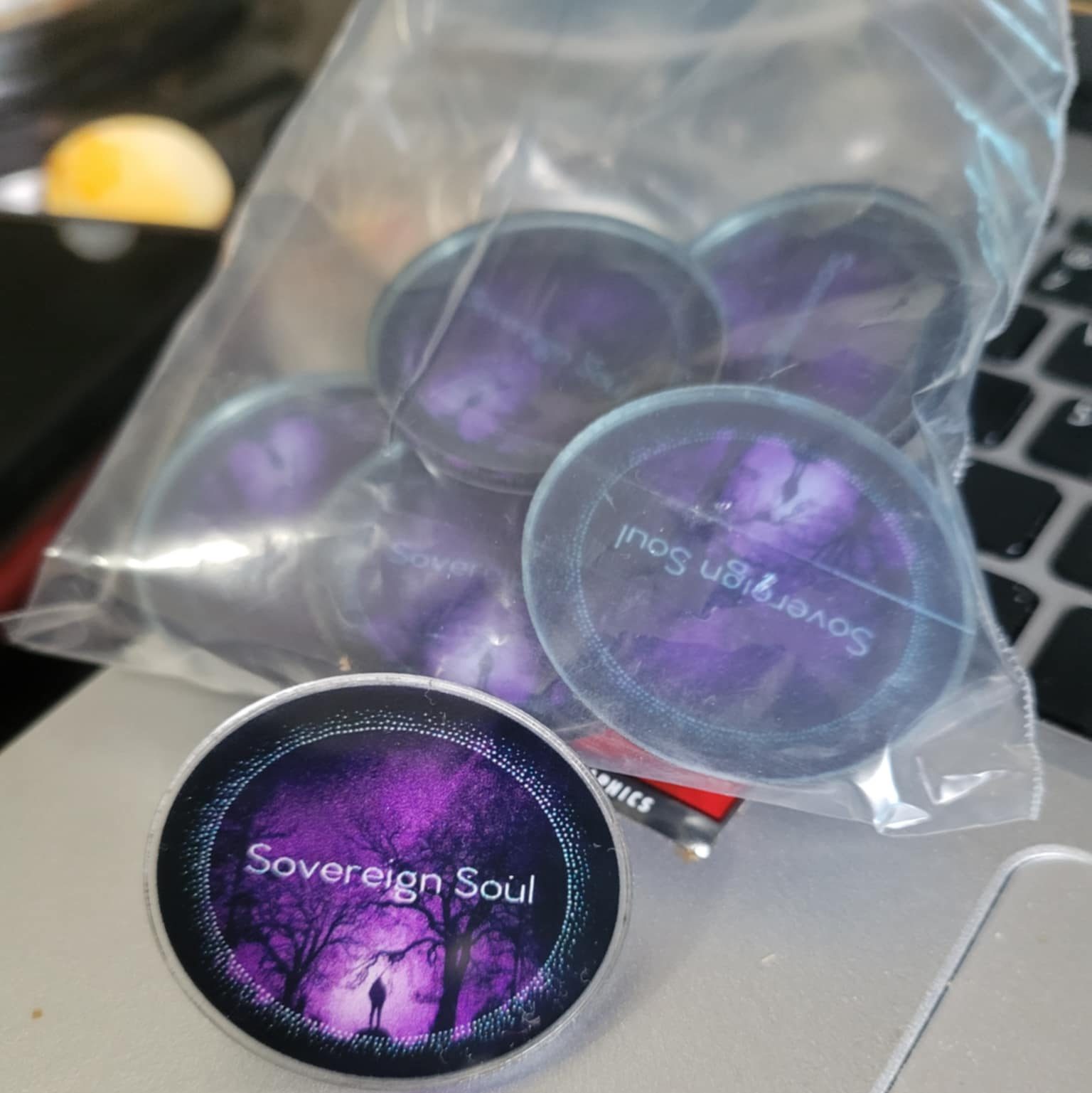 While the pins contain branding of the Sovereign Soul logo, the t-shirts only feature the art of the book–there is no official Sovereign Soul branding otherwise! I do hope to add something small in the future, as well as work with other designs to see what really clicks!